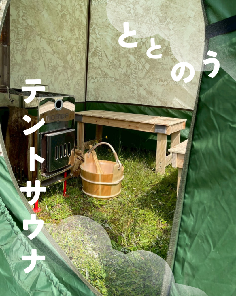 移動可能なサウナテントを好きな場所に設置して、薪ストーブで焚きます。