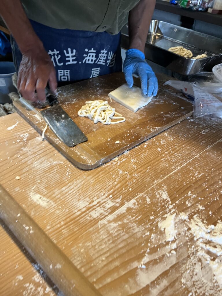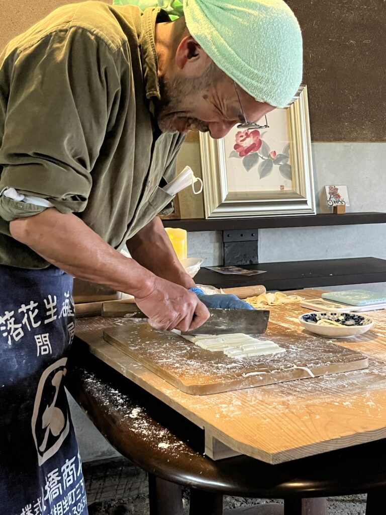 当日は、土間でうどんを伸ばして切っている姿もみえました。